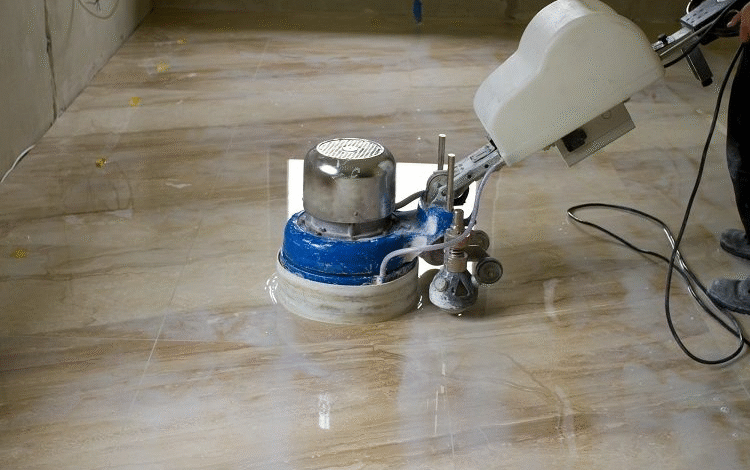 Grinding removes surface imperfections and scratches. Diamond grinding pads of varying grit levels are used for a smooth, uniform finish.